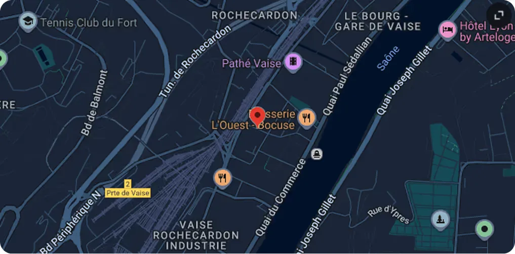 - Métro D et pôle bus – arrêt gare de Vaise (à 8 min à pied)
